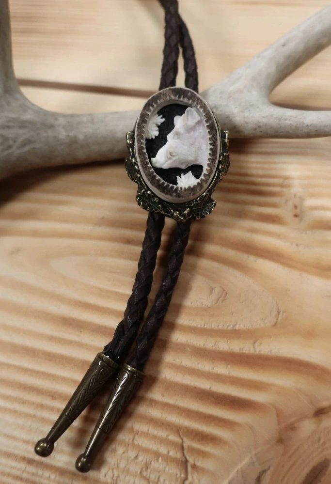 Slušivé myslivecké bolo je vhodné pro všechny společenské akce. Bolo je ručně vyřezávané z parohu a ozdobené kovem.