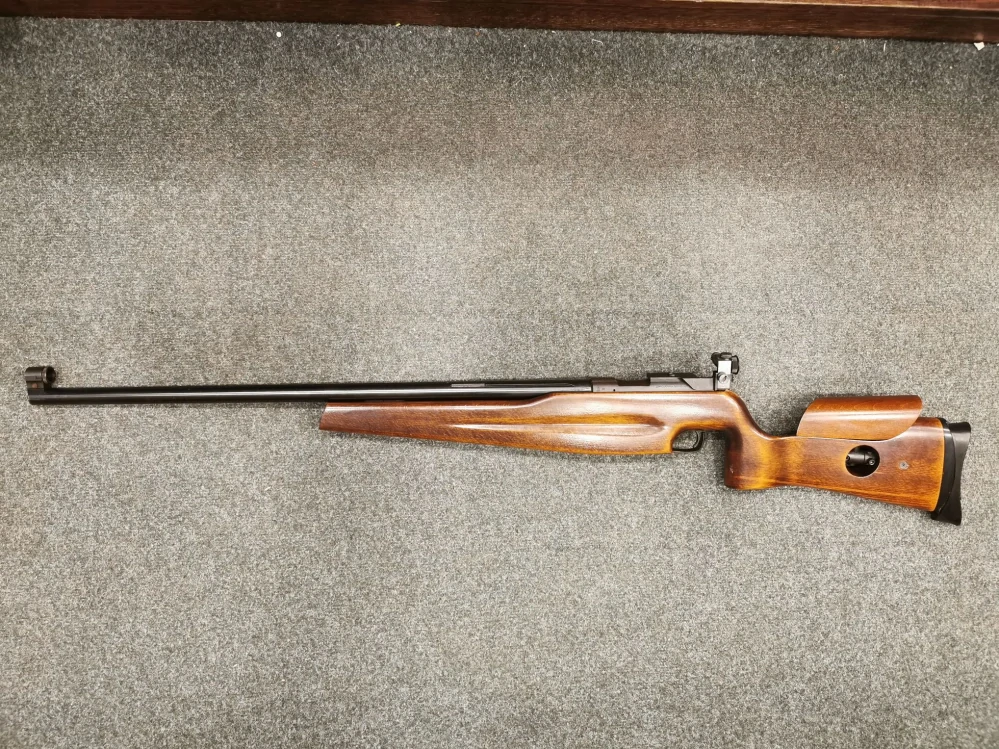 Velmi pěkná sběratelská jednoranná malorážková puška Brno Model 4 v ráži 22LR. Zbraň disponuje dioptrem s veškerým příslušenstvím, stavitelnou sportovní pažbou a těžkou hlavní. Stav jak po estetické tak po mechanické stránce je zánovní a původní. Rv 1956.