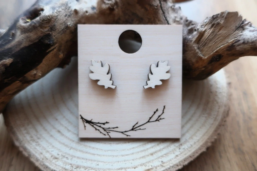 Dřevěné náušnice dubové listy