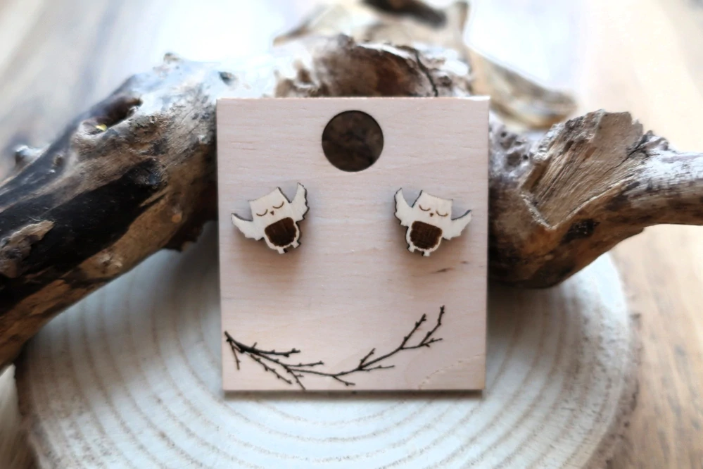 Dřevěné náušnice SovySkladem219 Kč/ ks181 Kč bez DPH