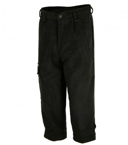 Klasické golfky , dvě klínové kapsy, stehenní kapsa, zadní kapsa, kapsička na nůž, dolní manžety zapínané kovovou sponou.