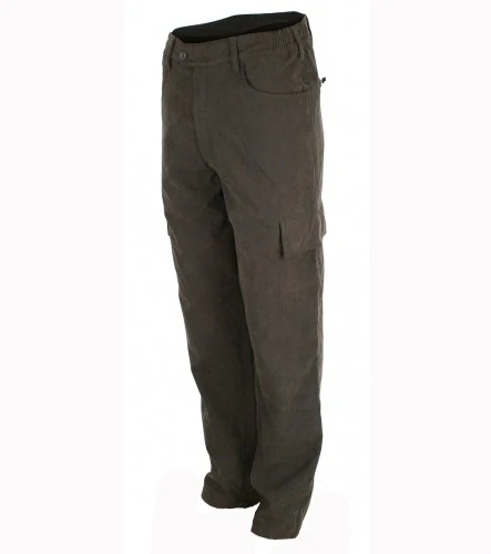Vnější materiál microfiber je příjemný na omak a odolný proti oděru. Lovecké kalhoty mají funkční střih a jednu stehenní kapsu.