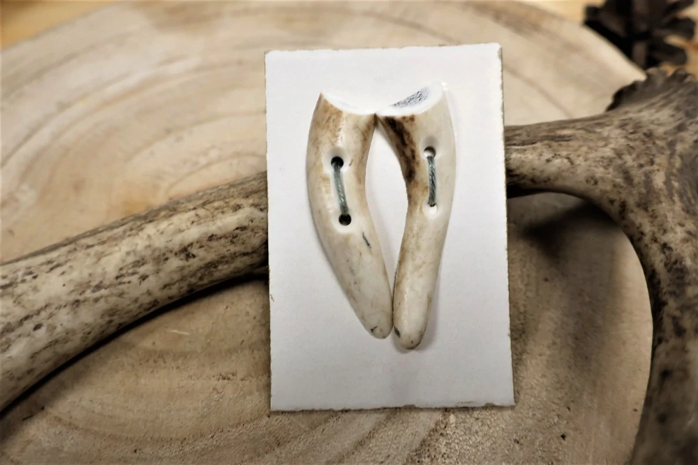 Ozdobné knoflíky vyrobeny z pravého paroží. Vhodné jako ozdoba do klopy mysliveckého saka. Délka cca 5 cm.