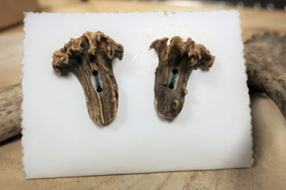 Ozdobné knoflíky vyrobeny z pravého paroží. Vhodné jako ozdoba do klopy mysliveckého saka. Délka cca 4,8 cm.