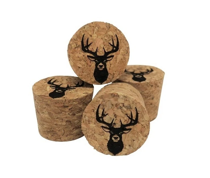 Korková zátka s motivem jelena. Korková myslivecká zátka s motivem jelena (1 ks). Obrázek je vytvořen pomocí laserového gravírování.