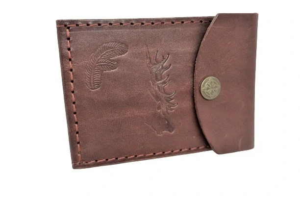 Kvalitní kožená peněženka vyrobená z pravé hovězí kůže - usně. Tato kožená peněženka je velice oblíbená a používá se na papírové bankovky, které jsou uchycené kovovým pérkem uprostřed.