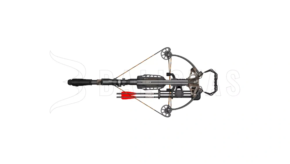 Kuše je osazena vyvýšenou 22mm weaver lištou, na kterou již výrobce upevnil kušohled 4x32. Ve přední části těla najdete tři další 22mm lišty pro montáž příslušenství jako držáku šípů nebo svítilny. Součástí balení je kromě kušohledu a držáku na 3 šípy ještě natahovák tětivy, vosk na lanoví a dva 20" šípy carbon.