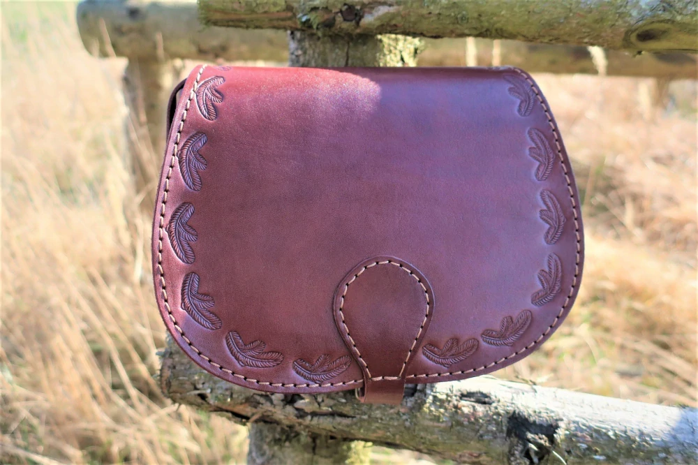 Malá myslivecká brašna zdobená ražbou z prvotřídní hovězí kůže. Vnitřní prostor řešený čtyřmi poutky na náboje. Lovecká brašna má nastavitelný ramenní řemen a zapínání na kovovou přezku. Na přední straně malá kapsa na doklady.