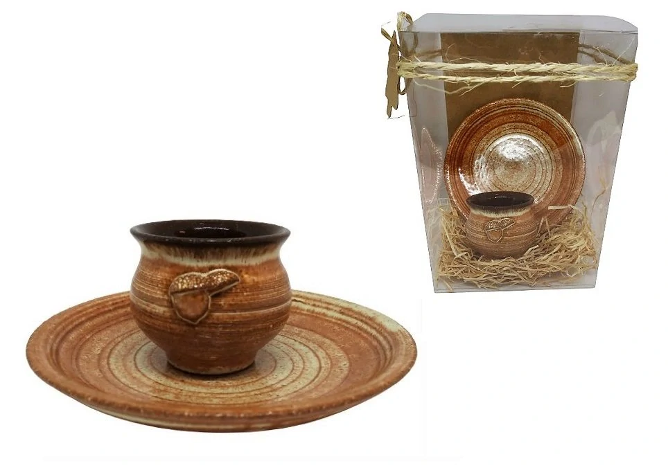 Malý keramický hrnek na kávu s motivem žaludu.