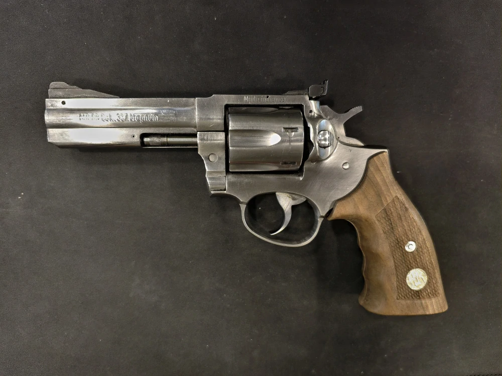 Krásný, kvalitní a plně funkční nerezový revolver Manurhin ráže .357 Magnum. Hlaveň 4". Zbraň kat. B