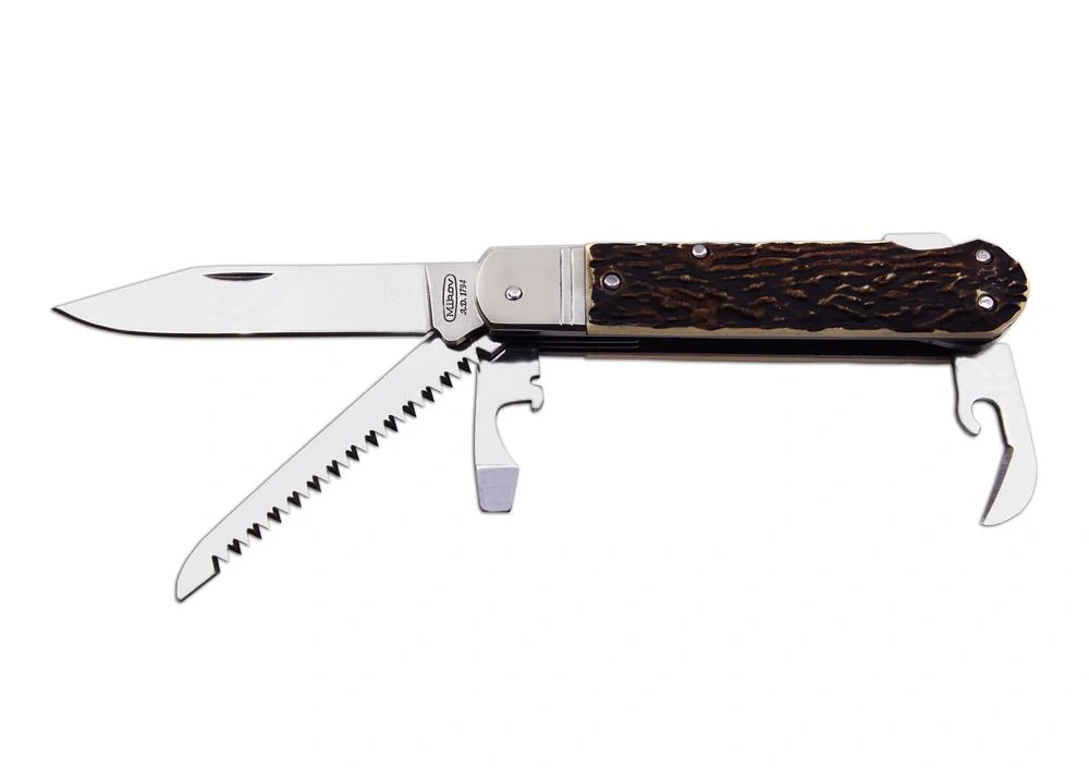 Lovecký nůž Fixir je vybaven čepelí z velmi kvalitní nerezové oceli 440A o tvrdosti 56HRc. Čepel loveckého nože Fixir má kónický výbrus, což umožňuje nejen lepší řezivost, ale i údržbu. Lovecký nůž Fixir je vybaven hřbetní pojistkou back lock pro větší bezpečnost při práci s nožem. Střenky loveckého zavíracího nože Fixir jsou vyrobeny z velmi kvalitní imitace parohu.