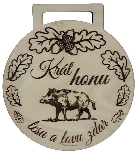 Dřevěná stylová medaile s gravírovaným motivem. Průměr medaile je 10 cm. Medaile pro vítěze soutěží, medaile pro chovatelské přehlídky, tábory, král honu a spoustu dalších příležitosti. Medaile je dodávána bez stuhy.