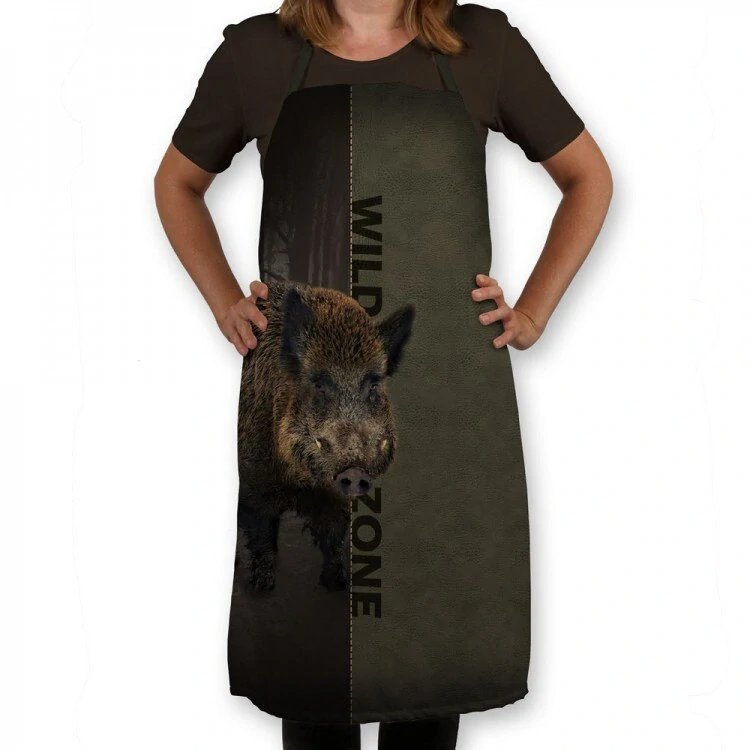 Myslivecká kuchyňská zástěra Wildzone na vaření s motivem divočáka. Smyčka za krk a v pase na zavazování, úprava velikosti.
