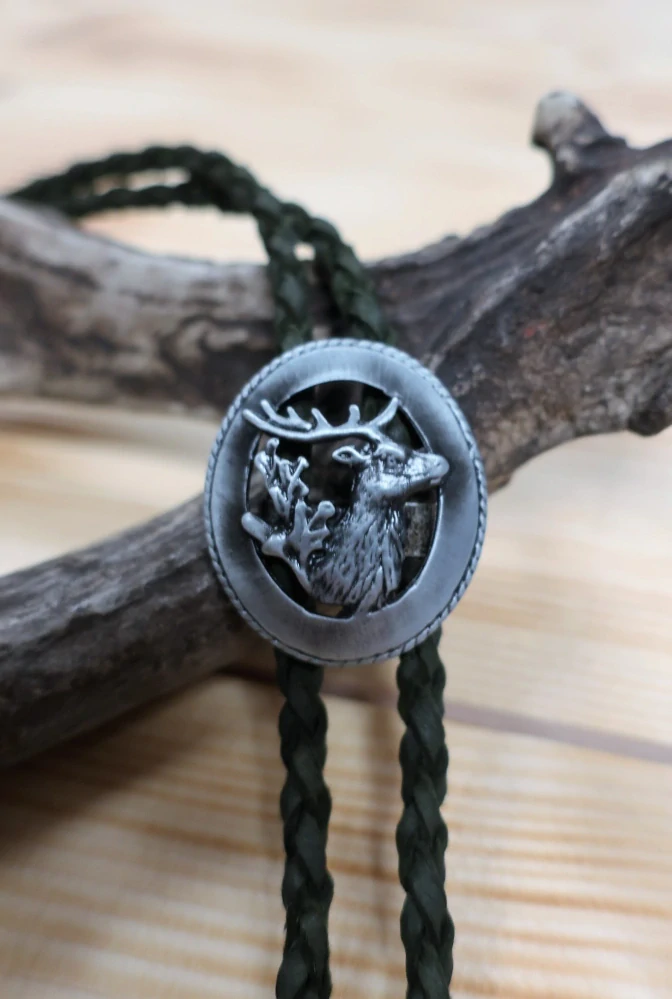 Slušivé myslivecké bolo je vhodné pro všechny společenské akce. Kovový myslivecký motiv s povrchovou úpravou starostříbro je zavěšený na celokoženém pleteném řemínku s kovovým zdobným zakončením.