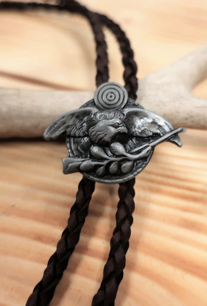 Slušivé myslivecké bolo je vhodné pro všechny společenské akce. Kovový myslivecký motiv s povrchovou úpravou starostříbro je zavěšený na celokoženém pleteném řemínku s kovovým zdobným zakončením.
