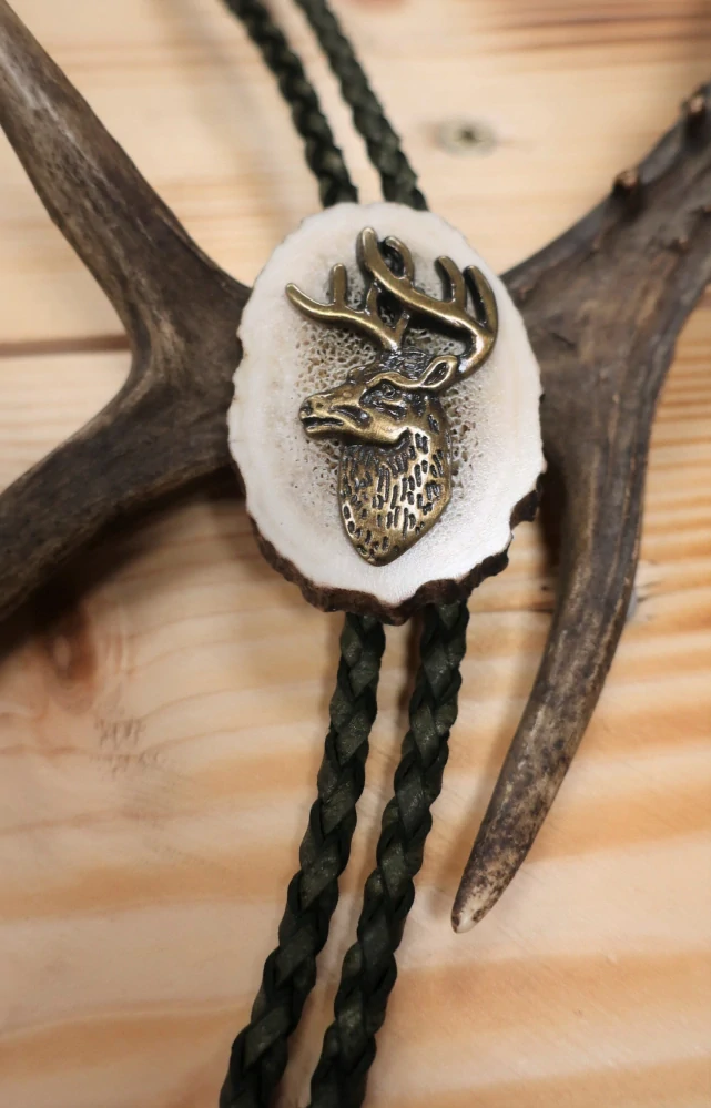 Slušivé myslivecké bolo je vhodné pro všechny společenské akce. Bolo je vyrobené z parohu, ozdobené kovem a zavěšené na celokoženém pleteném řemínku s kovovým zdobným zakončením.