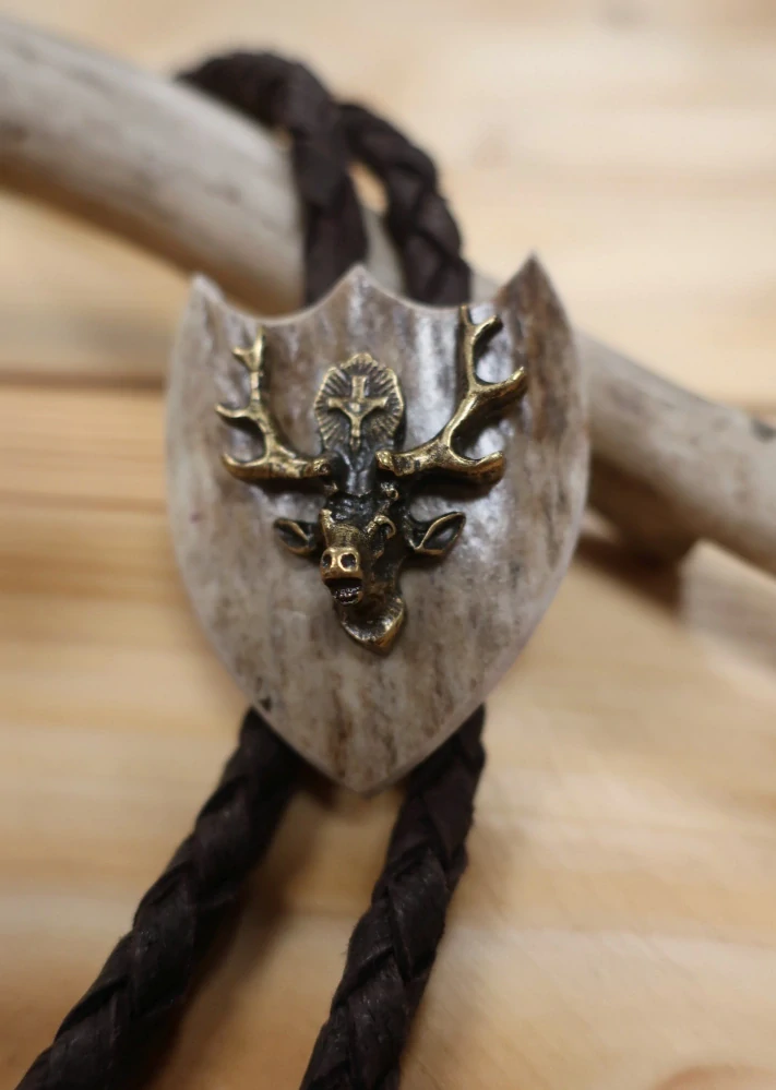 Slušivé myslivecké bolo je vhodné pro všechny společenské akce. Bolo je vyrobené z parohu a ozdobené kovem.