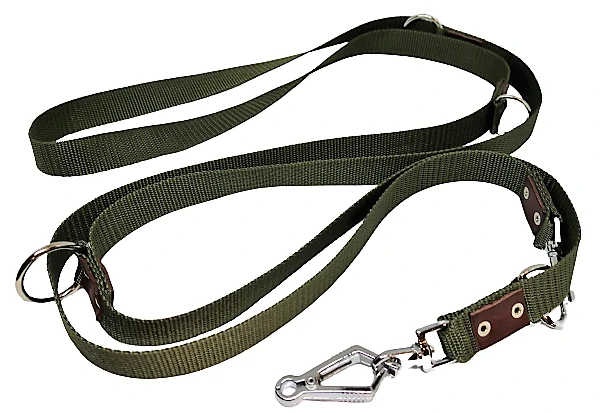 Vodítko má dvě karabiny, přepínací klasickou karabinu a ukončeno je klešťovou karabinou. Vodítko je opatřeno třemi kroužky umožňující nastavení 3 různých délek.