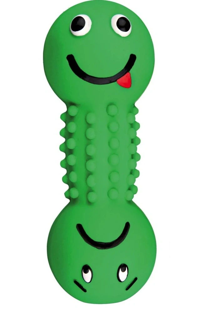 Latexová činka pro psy je plněná a opatřena zvukem. Plastické výstupky na jejím středu jsou příjemné a slouží pro masáž dásní.