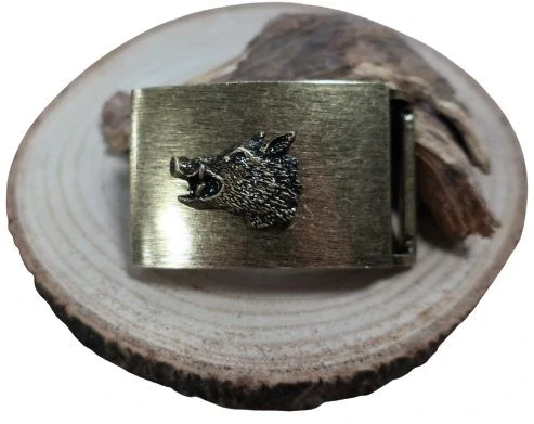 Kovová přezka s motivem divočáka.