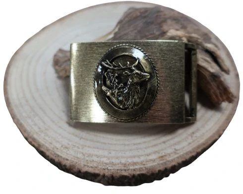 Přezka ke koženému opasku - Jelen ovál zlatý