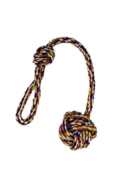 Bavlněný provaz s míčkem na konci pro psy.